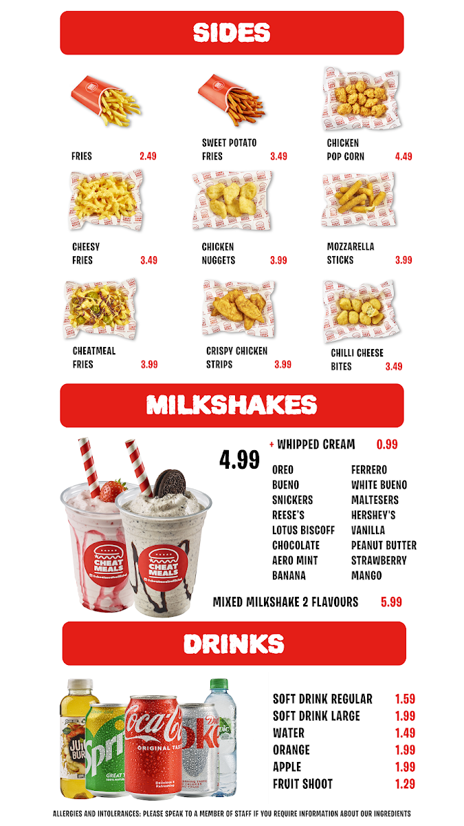 Tucked away on 36 London Rd in Croydon, Cheatmeals is a haven for comfort food enthusiasts craving bold flavours, generous portions, and indulgent street-style eats. The Cheatmeals Croydon Menu is a carnivore’s playground, fusing American fast-food sensibilities with Middle Eastern and British twists for a uniquely satisfying experience.